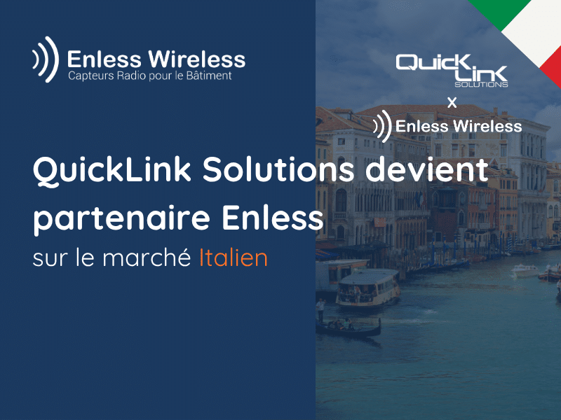 QuickLink Solutions, société italienne, distribue des systèmes de gestion de l’énergie intégrés et intelligents pour les bâtiments. Fondée en 2008 et éditeur de plateforme IoT Tridium (Niagara Framework), elle dispose d’un large réseau d’intégrateurs systèmes certifiés Tridium (Niagara TCP). Quicklink Solutions référence donc depuis le mois de janvier 2022 au travers de son catalogue produits en ligne la gamme de capteurs et récepteurs LoRa d’Enless Wireless.